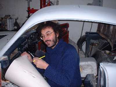 Pat Locker at work on his Farina (E1 SA 109R), literally putting on a finishing touch prior to its respray. This would be very early in 2003 when the completed car took to the road again |